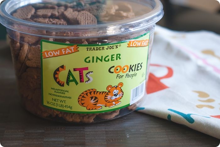 So, today's review is of Trader Joe's Ginger Cats Cookies (for people). They are labeled as "lowfat" with no artificial flavors or preservatives.